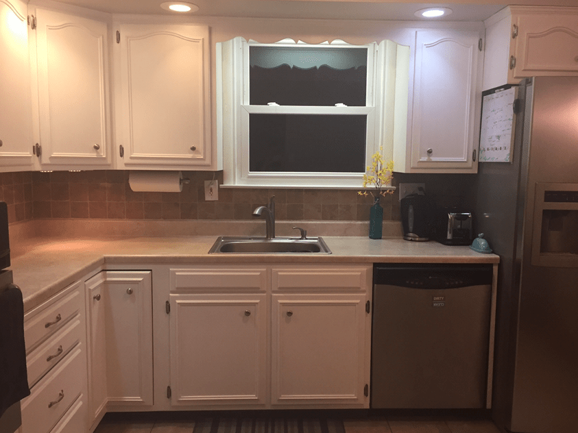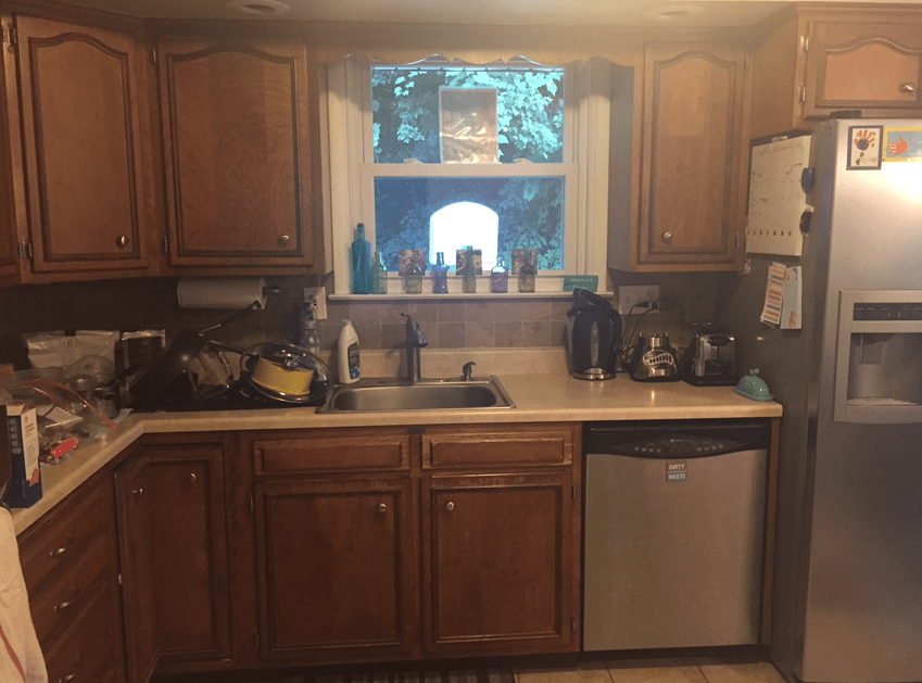 The kitchen in our 1960s house still had its original oak cabinets. I decided that the best way to update the kitchen without spending too much money was to paint the cabinets white. I will say, it is a lot of work and takes a lot of time. So, if you can afford to pay a professional painter to do it for you, then you should go that route. But, if you have more time than you have money, you can do it yourself!